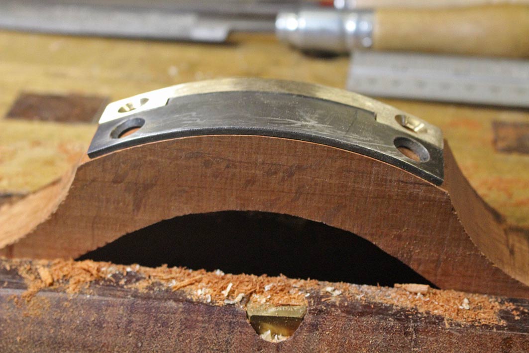 Grind the brass mouth so that it lies a smidgeon of a mm lower than the blade, and curves about 3 degrees towards the toe ...