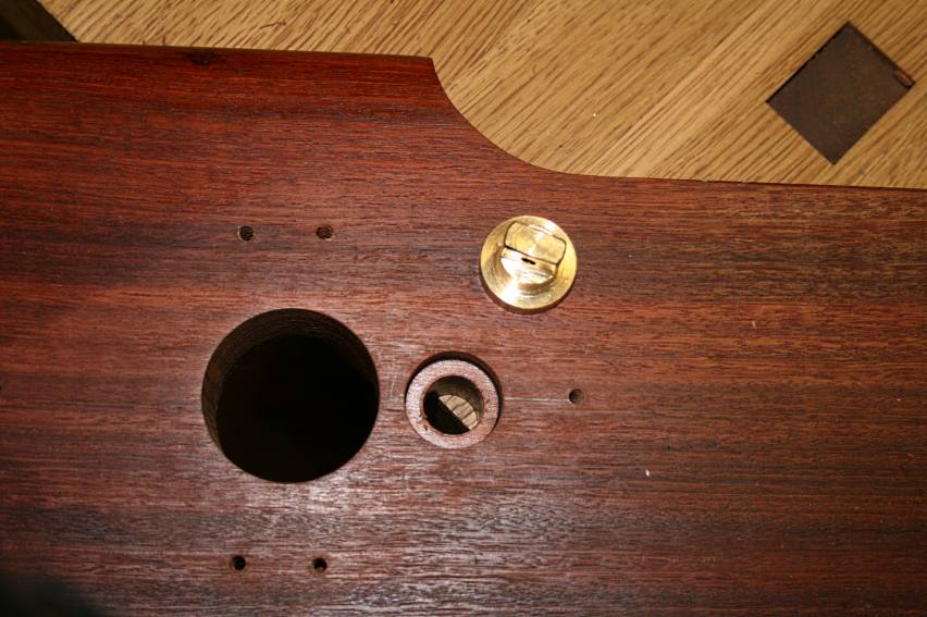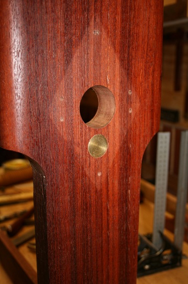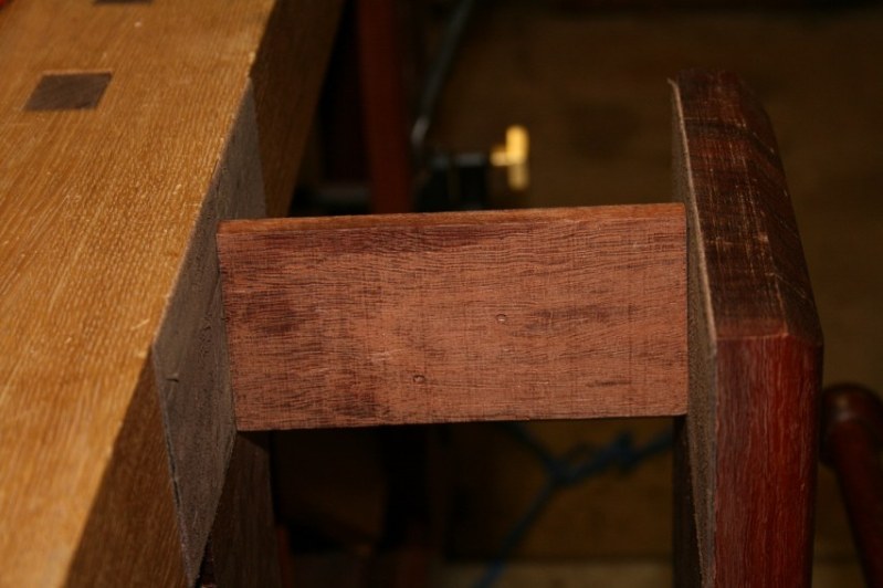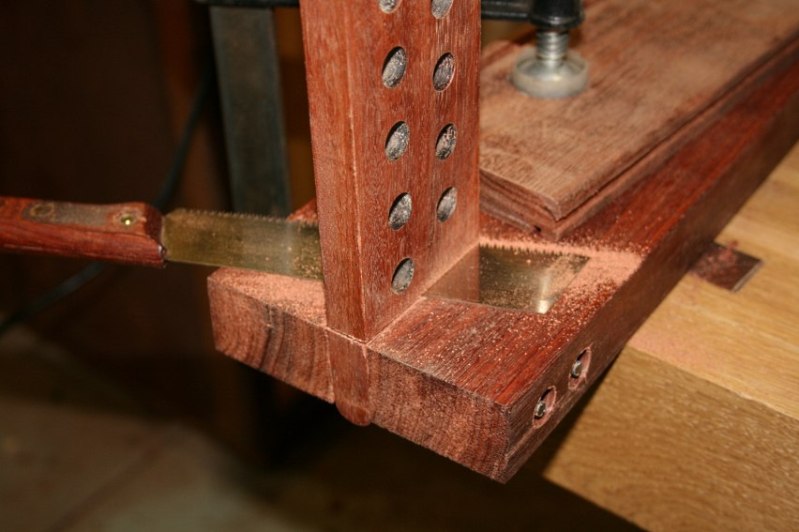 The next step is to drill the hole for the chain through the leg. As mentioned earlier, this will end up as close to the screw block as possible. I really pushed this to the limit. It is not necessary to get quite this close!