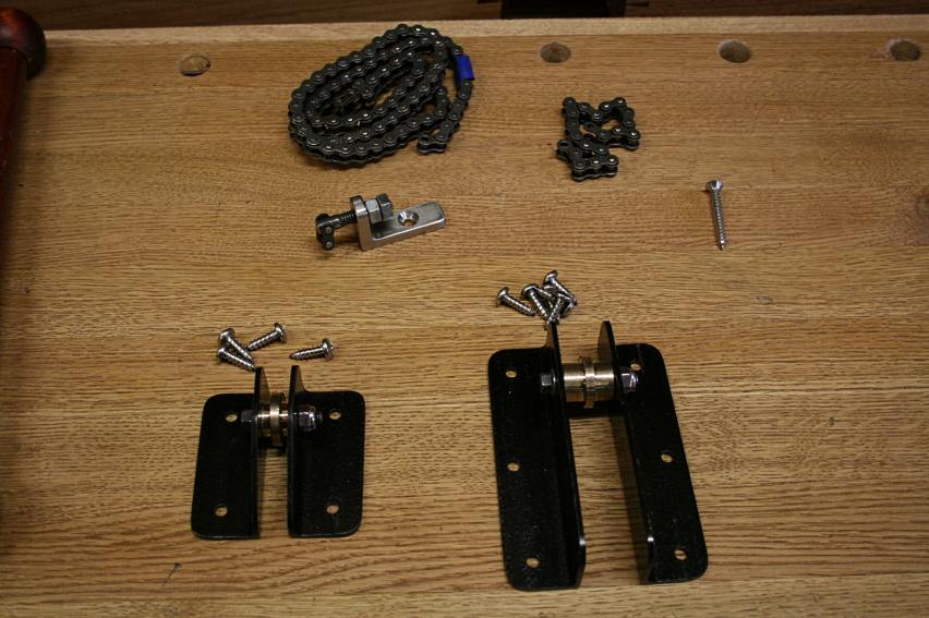 … consists of two rollers withing brackets, with a chain (which is larger than the standard bicycle chain), and attachments for each end.