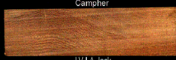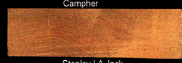 All the timber ends were planed on the shooting board. There was a clear pattern evident with the worst surfaces (tear out and/or chipping) evident first in the soft woods, then less so as the timber increased in density. Jarrah produced the best finish. Evident, too, was that the best finishes came from the jack planes in LA mode, and the worst came from the high angle HNT Gordon Try Plane, which left a comparatively ragged finish. Of the LA Jacks, the Stanley produced a very slightly smoother finish on the soft woods, consistently taking full-length shavings. Against my expectations, the LV did not quite match this. The LV did produce a slightly cleaner surface in sections, but was not as even overall. The pictures of the Camphor below depict this.