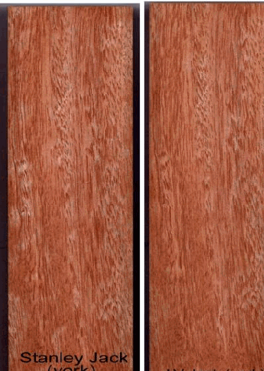 By contrast, Jarrah and Tasmanian Oak finishes were identical for the LA Jacks. These cuts were clean, free from tear out, and had a smooth, burnished look that the soft woods could not manage.