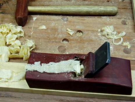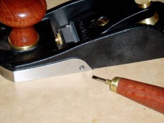 wooden plane and that the blade is held in with a wedge. Adjustments