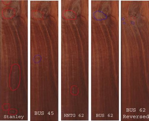 The only difference between the Stanley and BUS-45 was a subjective one. The BUS-45 appeared to produce a slightly shinier finish than that by the Stanley. This was not considered significant, however, since a coat of oil or wax would likely obscure it.