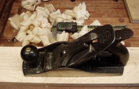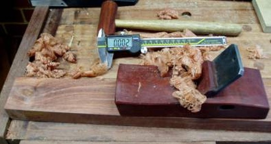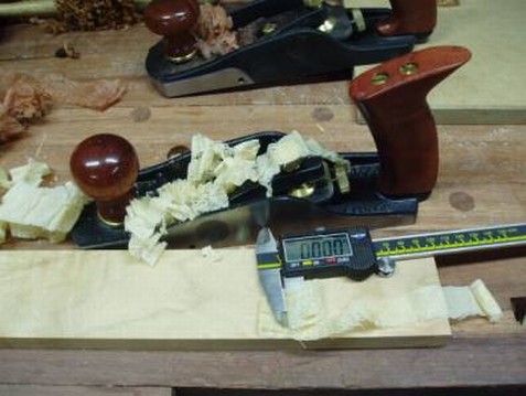 Both planes were carefully set up with the smallest mouth size that could still produce wide shavings. These were measured with a digital micrometer.
