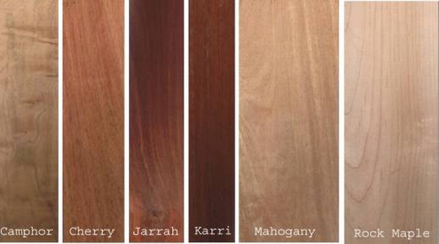 While technically they are all hardwoods, the Cherry (USA) and Camphor (Australia) would be viewed here as falling in the softer range (sp gravities .58 and .59 respectively), with Mahogany and Maple (both USA) falling into the middle range (sp gravities .64 and .72), and Jarrah and Karri (both Australia) the hard range (sp gravities .80 and .88).