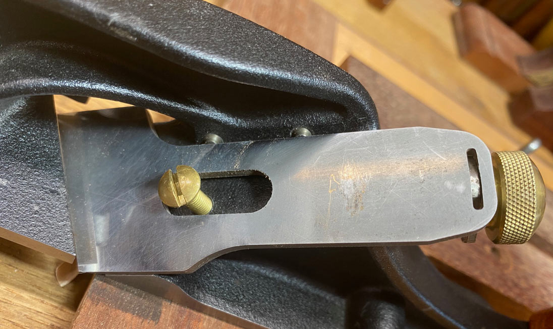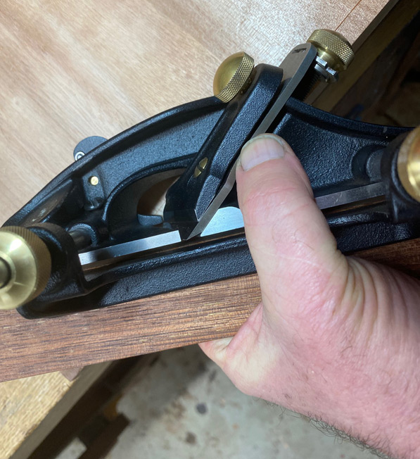 fractionally, and use a plane hammer to tap the blade in a little. I