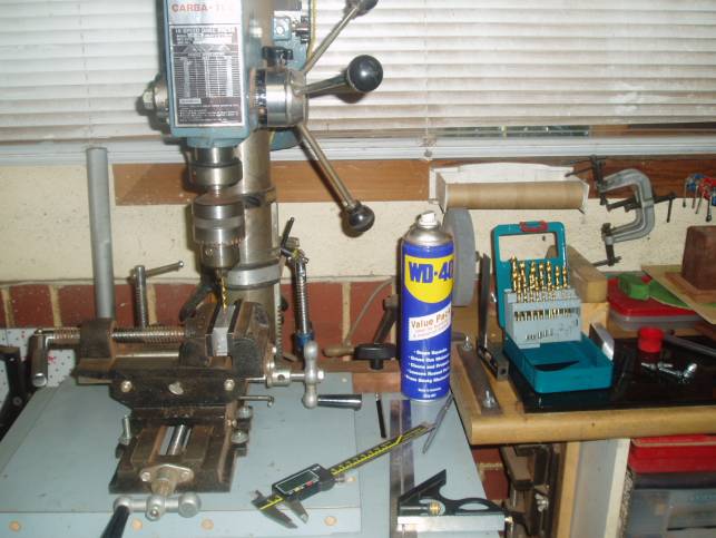 picture of my Poor Man’s Metal Machining setup: drill press,