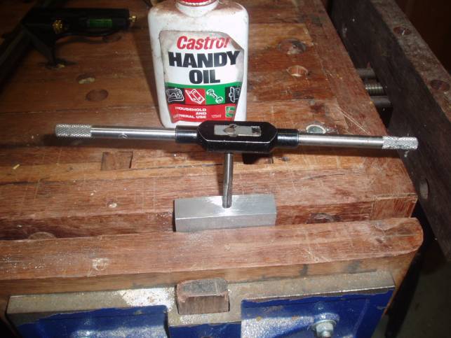 thread you will later tap for an allen head bolt. From the other
