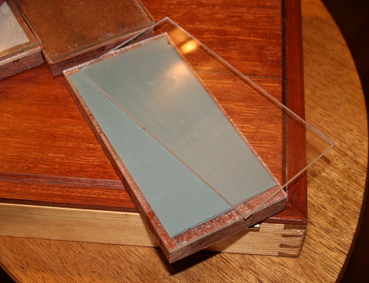 plates with diamond lapping film in 15, 3, 0.5 and 0.1 microns (from