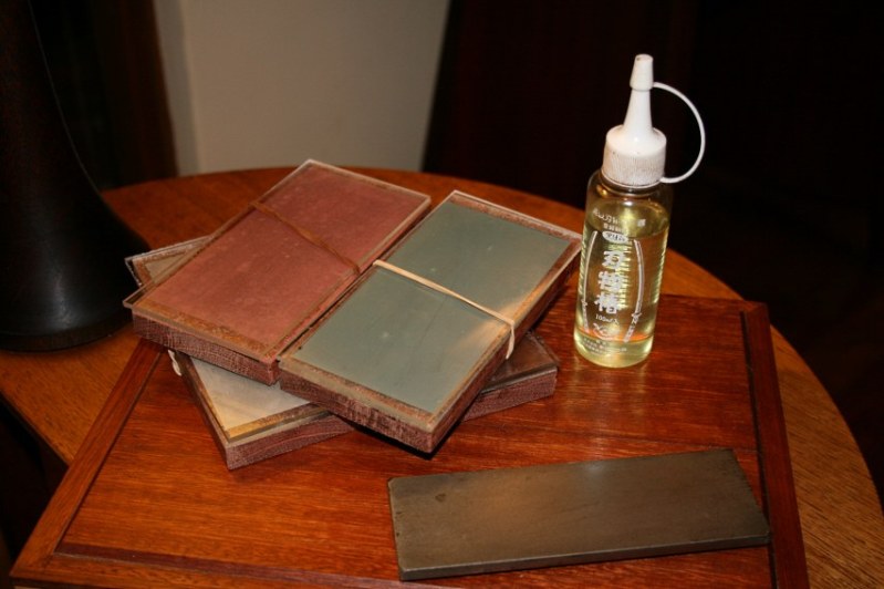 of a 600 grit diamond stone (for removing fine chips), and then four