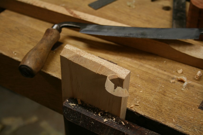 Below: testing the drawknife on Radiata Pine end grain. A good result on some really difficult wood.
