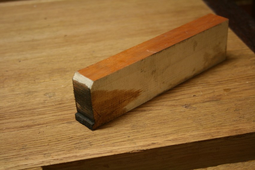 This is the jig described by Curtis. It is simply a block of wood with a small ledge. The ledge is to rest the blade and the back of the blade will guide the blade (hence the top of the drawknife needs also to be smooth and fair). Use wax for added smoothness.