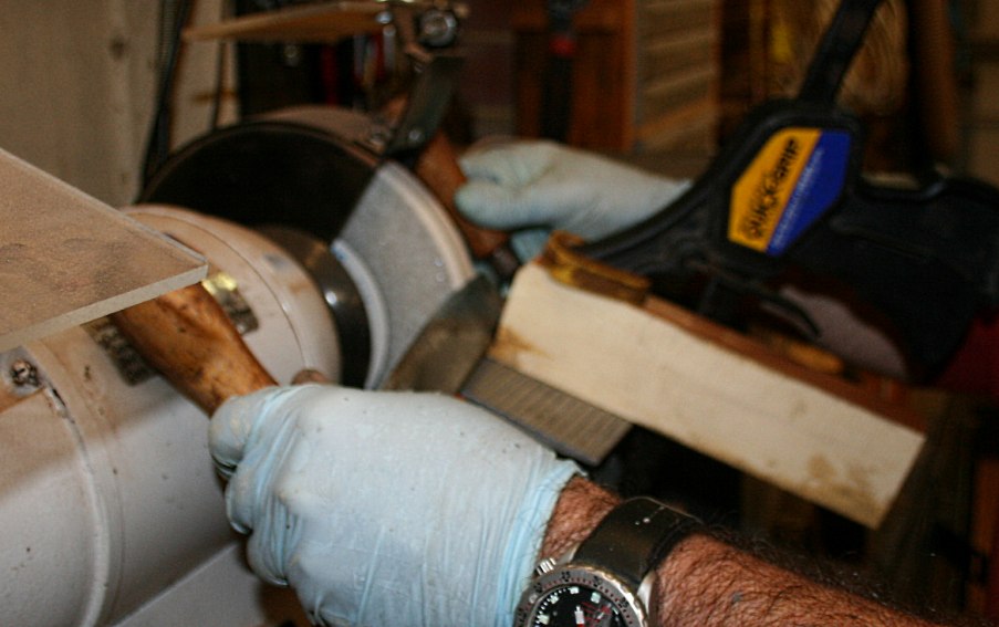 Once the hollow is completed, it is time to begin grinding and polishing a micro bevel.