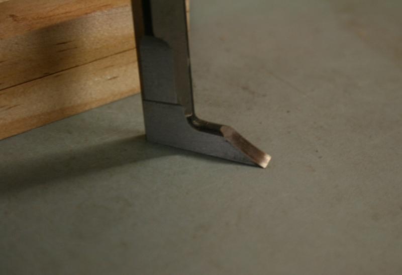 The aim is to use the V-groove to keep the bevel square to the wheel. Ensure that the direction of the turn is into the bevel. This is a LV 1/4" blade.