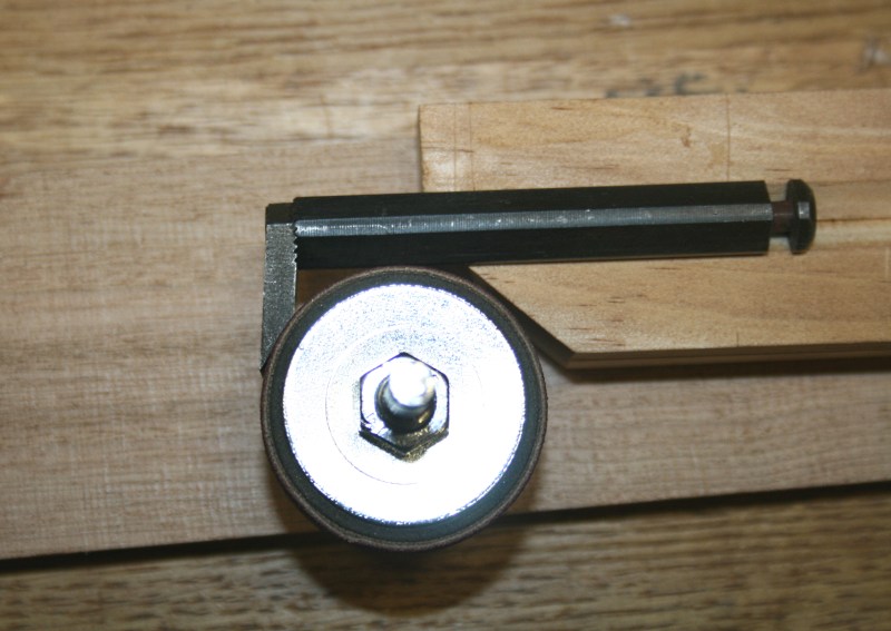 This is used in conjunction with a sanding wheel on a drill press. Use a coarse grit, around 80 - 100 maximum.
