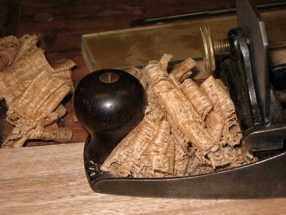 Here is a picture of the thin blade scraping a board of Tasmanian Oak…