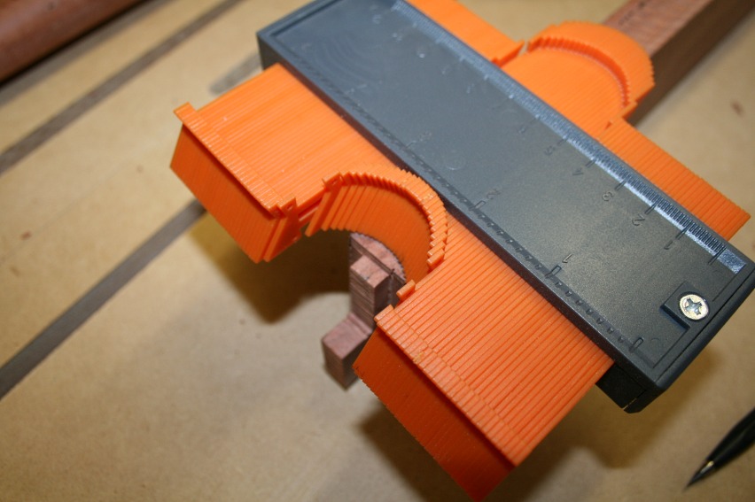 The first step is to trace the intersecting curve at the leg with a contour gauge.