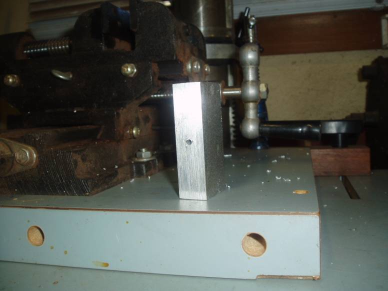 picture of my Poor Man’s Metal Machining setup: drill press,
