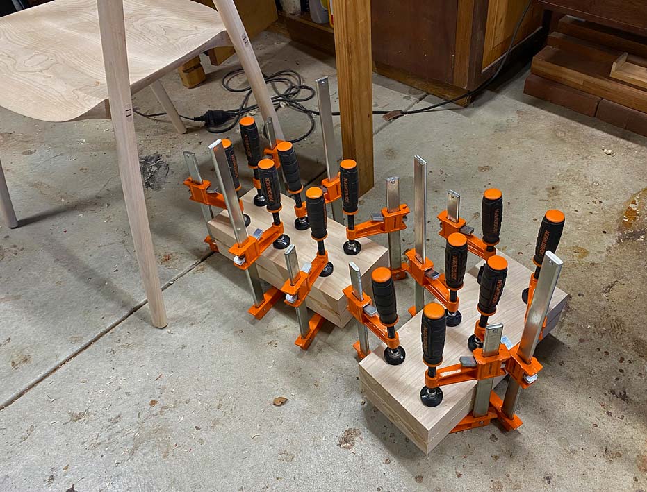 of the blocks (seen beng glued up earlier) create four arm blanks