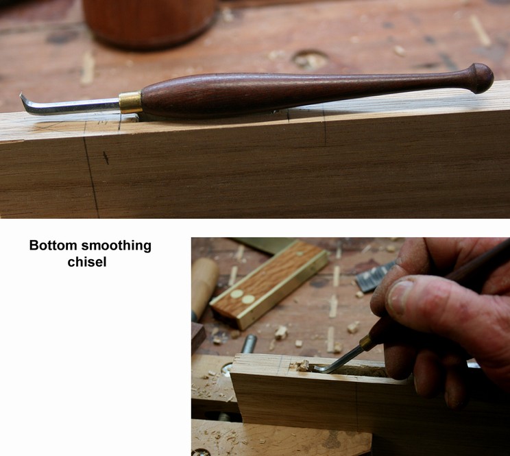 The other tool I find useful is a bottom cleaning chisel I ground out of a hex wrench. This will pry out chips and smooth the bottom of the mortice.