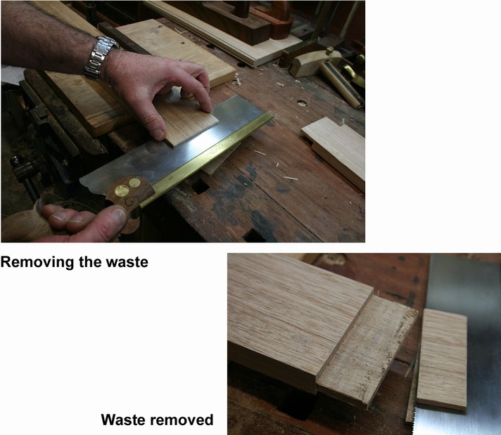 Dimension the tenon cheek by marking the waste and sawing this off.