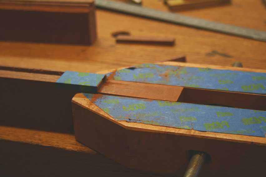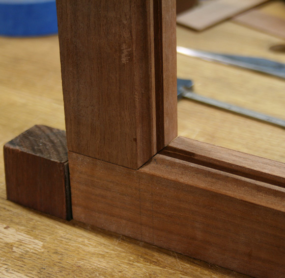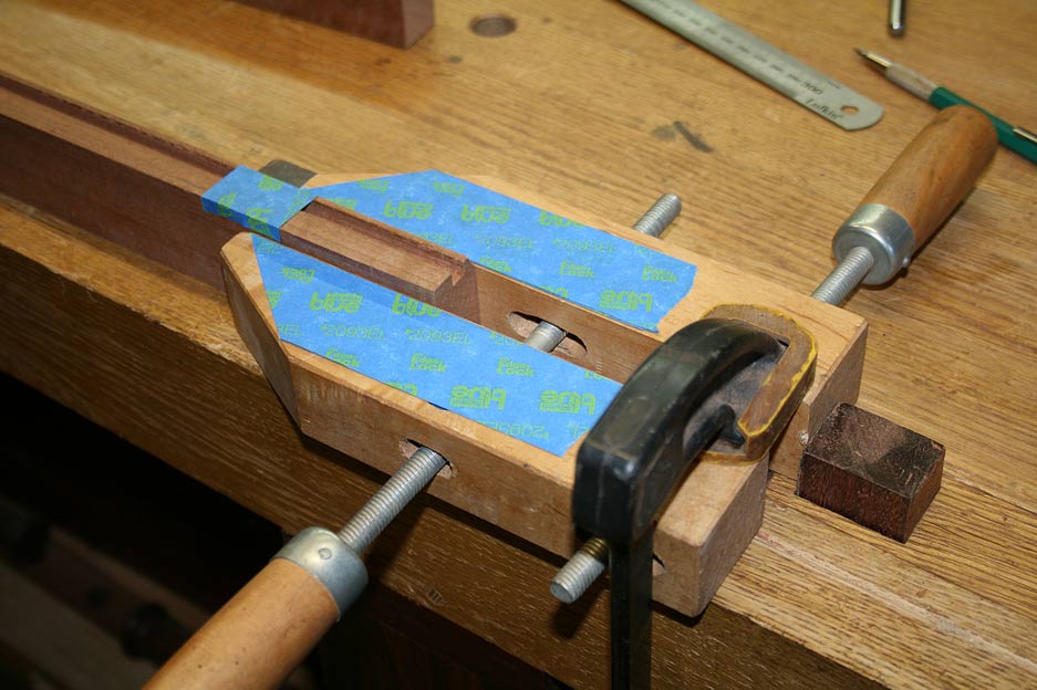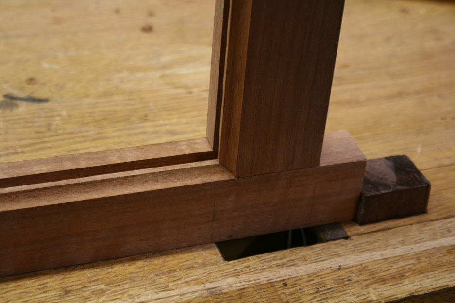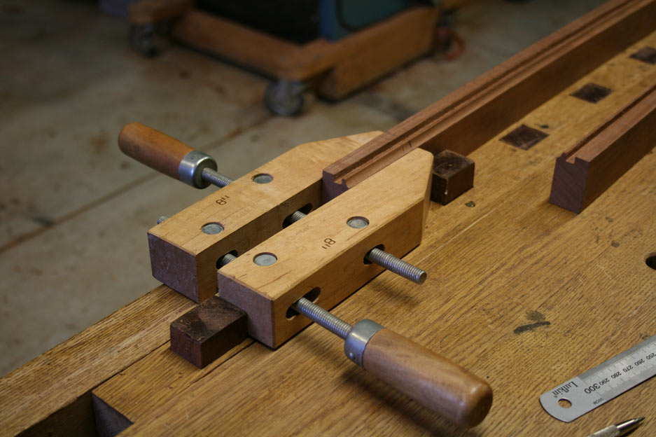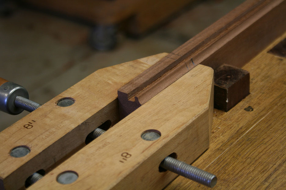By lucky chance, the height of the clamp was exactly in line with the lower edge of the cove, which was the level for the mortices.