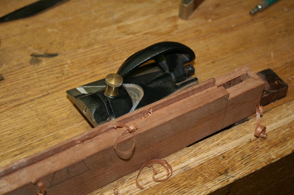 An example was the grove for the panel. It did not matter if at a different depth in at the centre of the panel. However, this would be noticeable at the corners. This was easily remedied with a side rabbet plane (above).