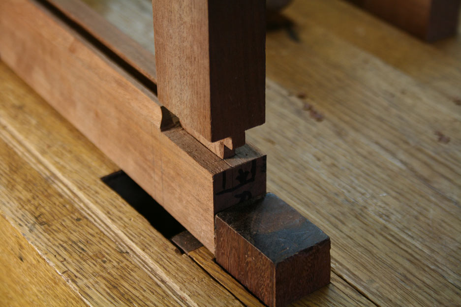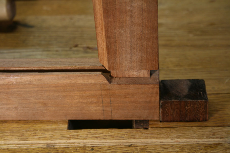 The lower end of the leg has a blind mortice …