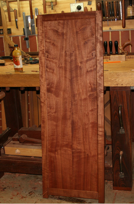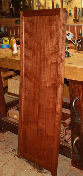 Below is one panel that is a dry fit only. It has one coat of oil so far. The panel needs to be oiled before the frame is glued and draw-bored together, otherwise any shrinkage might expose bare wood.