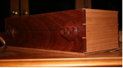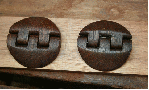 Here is a pictorial of how I fashioned the wooden hinges for a box I built. Note that this hinge is but one of many possible methods and designs. Frankly I do not see it as the prettiest I have designed – but it fitted with the project.