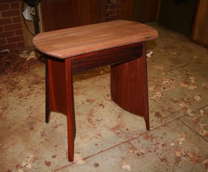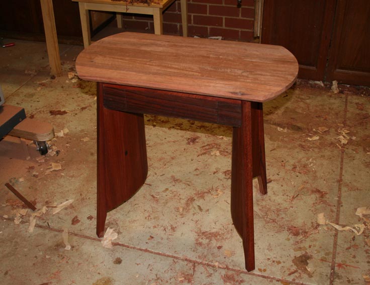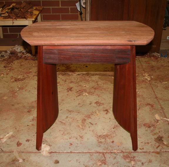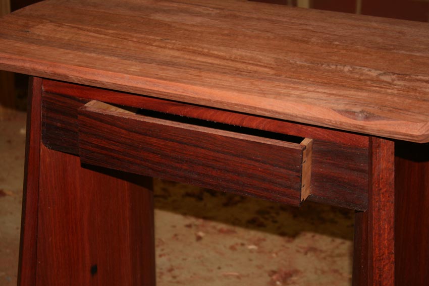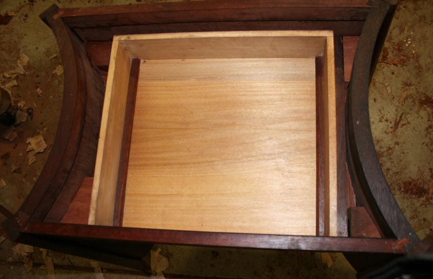 I did not quite finish planing the bevel all the way around – managed three sides – before having to head off. Enough was done to give you a better idea of the design. The top should end up the same dark colour as the drawer once it is oiled.