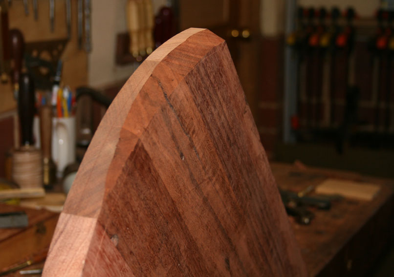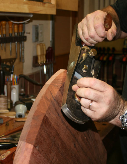 The bandsaw was used to rough out the curved ends for the top, but to shape the bevelled edge I returned to handplanes.