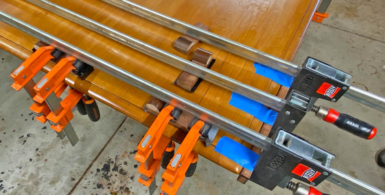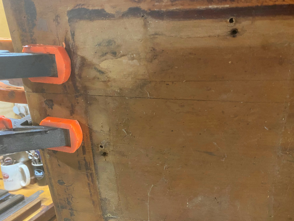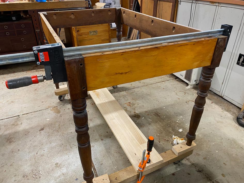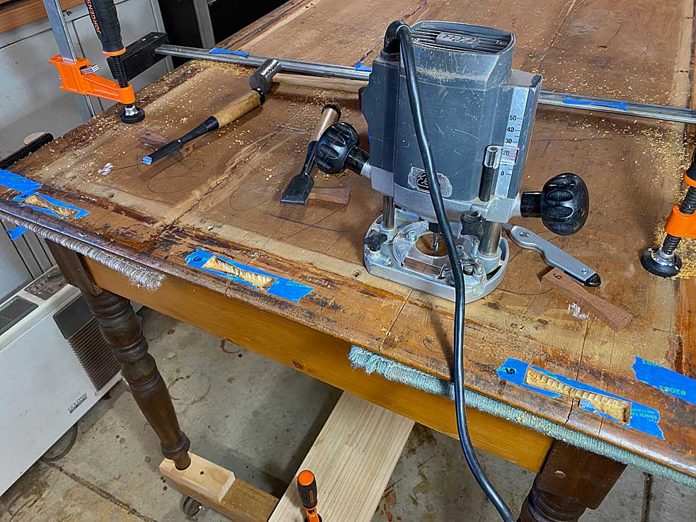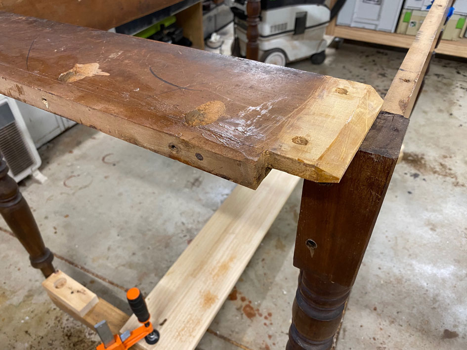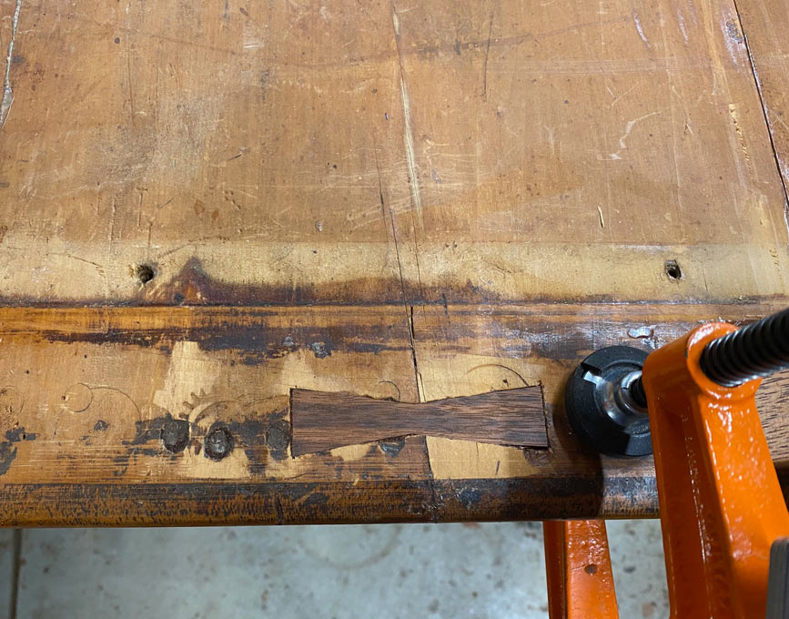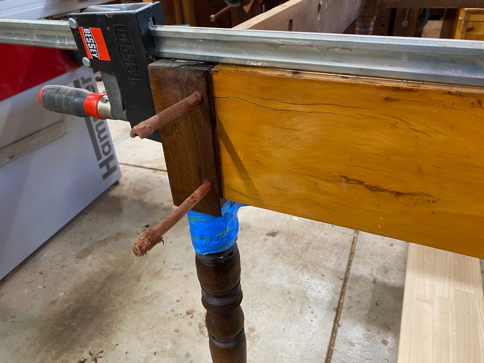 the legs in tight with a clamp to ensure that the tenon is not chewed