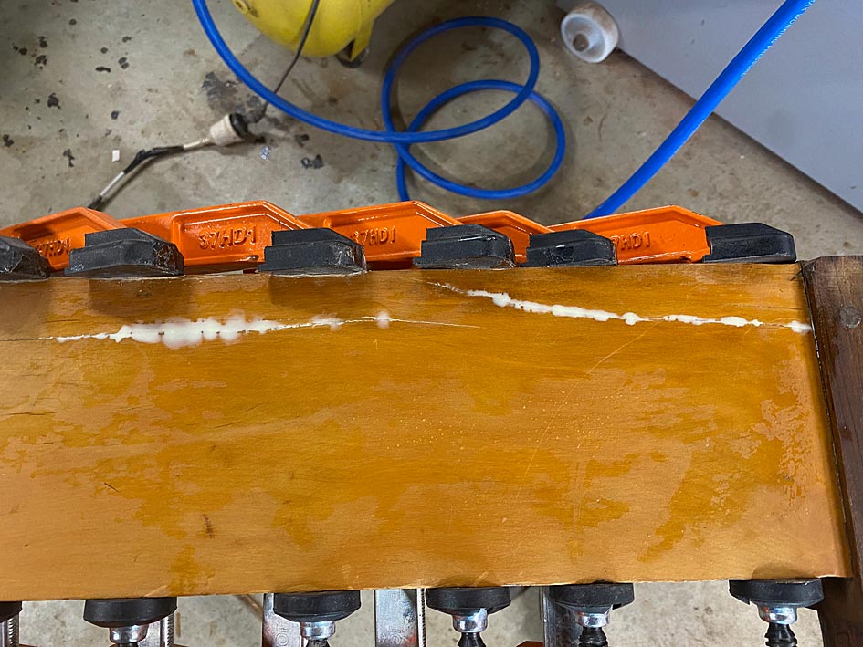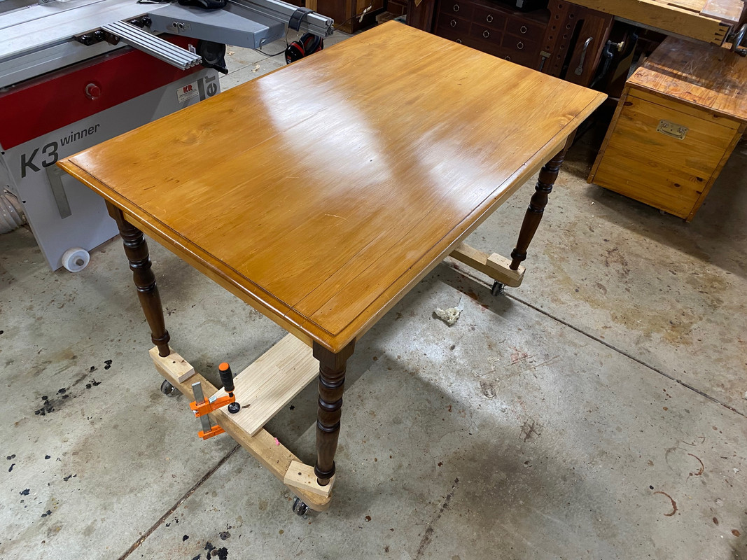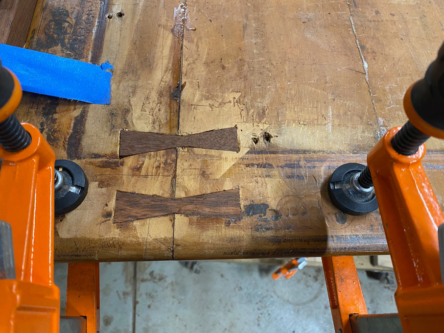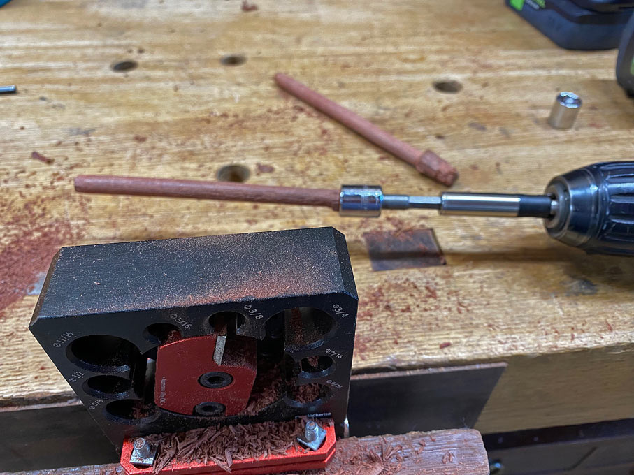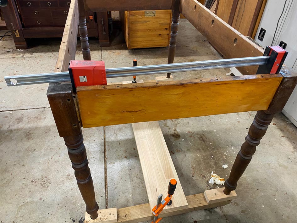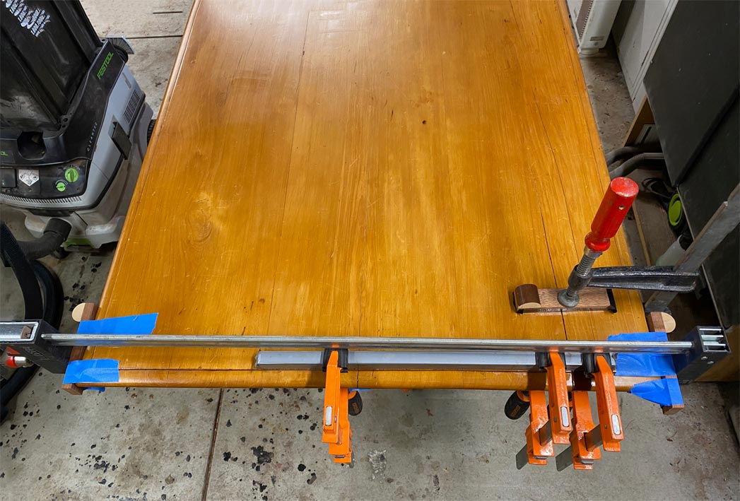 the legs in tight with a clamp to ensure that the tenon is not chewed