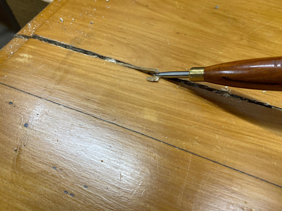 ridge. This was cleaned up using a very sharp card scraper taking the