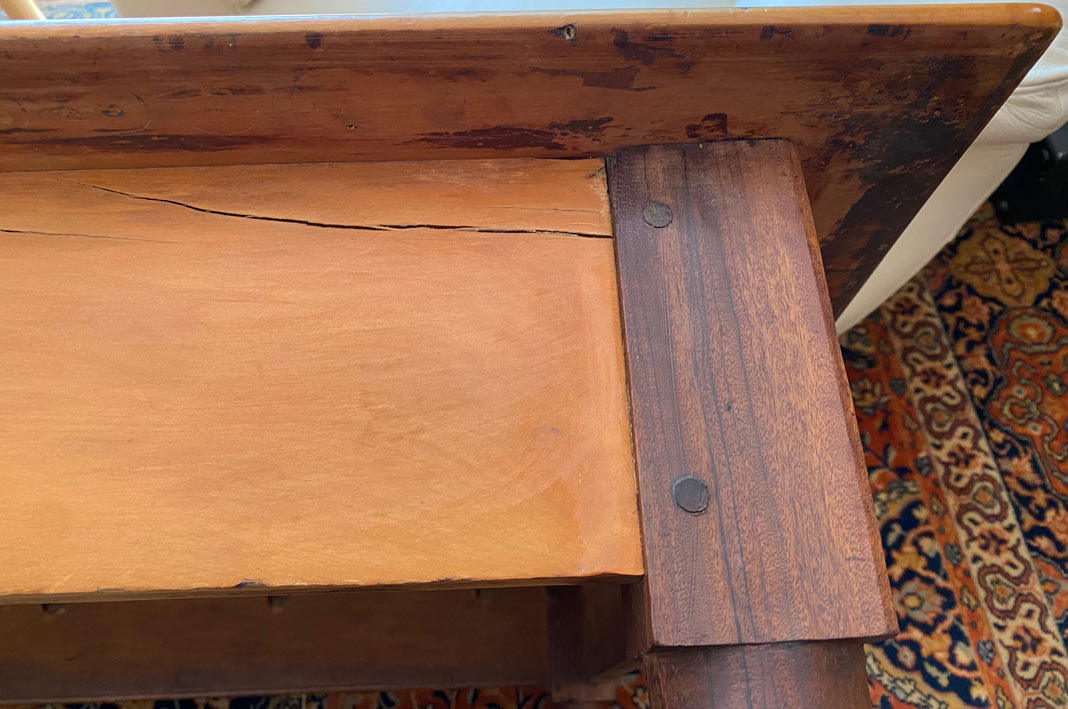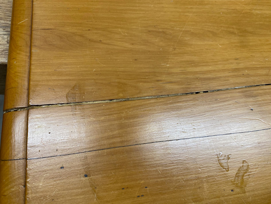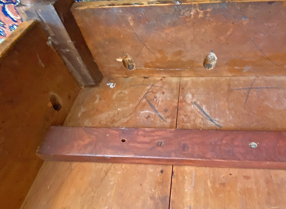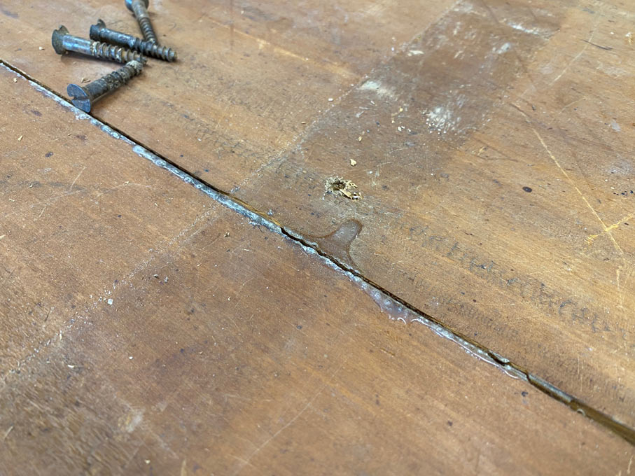 brittle, which suggests hide glue to me. The wood is so dry that it