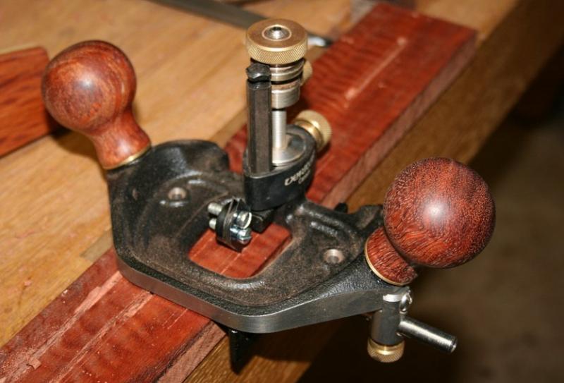 It should be straight forward: score the sides, and chop out the waste. Well, scoring the sides is not straight forward for the compound curves. To begin, a cutting gauge needs to have the appropriate fence to follow a curve. OK, so I can do that.