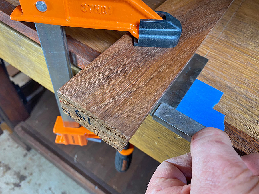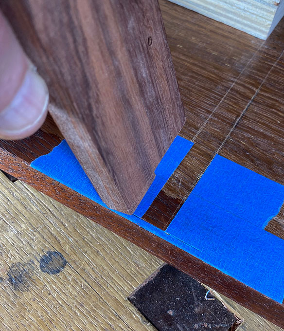 A line is scribed at the two apex points, and the dovetailing guide is placed against it ...