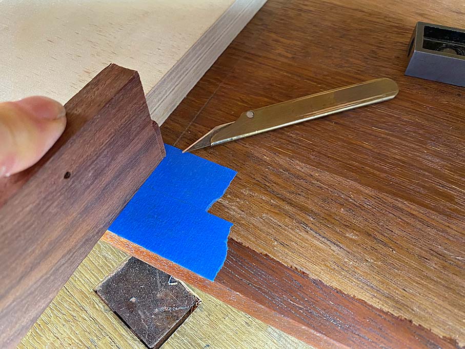 This could not be done without the aid of blue tape. This is used to mark the apex of the tail ...
