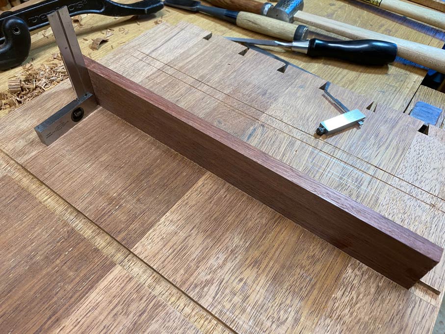 Why do it this way, and not use a power router or tablesaw? I believe that I can be more precise with hand tools. This includes the positioning and fine tuning of the dados.
