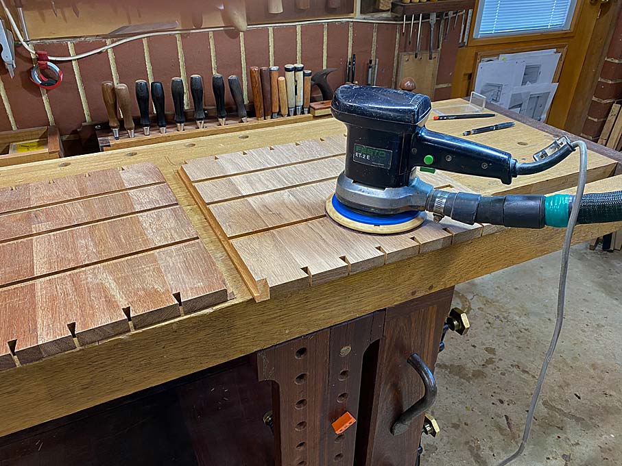 ... the surfaces are sanded to 240 grit. This is an original (!) Festool sander, when it was still "Festo"! I have had this about 25 years. Heavy, but works well for this task.