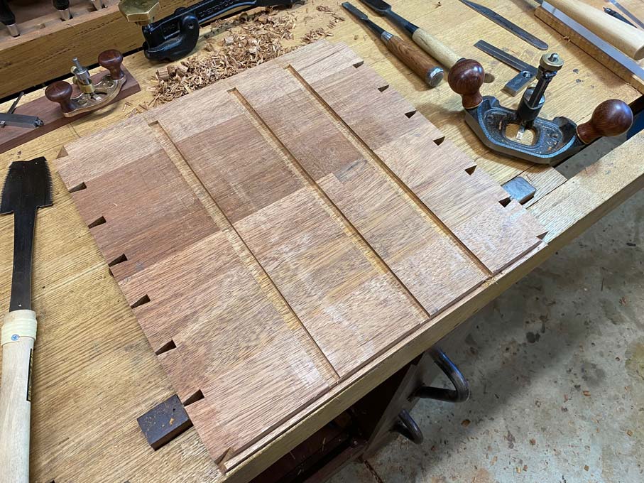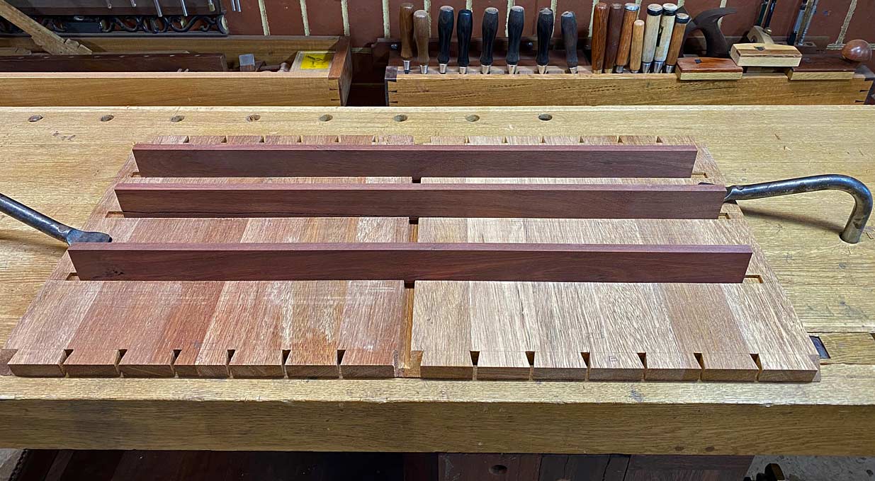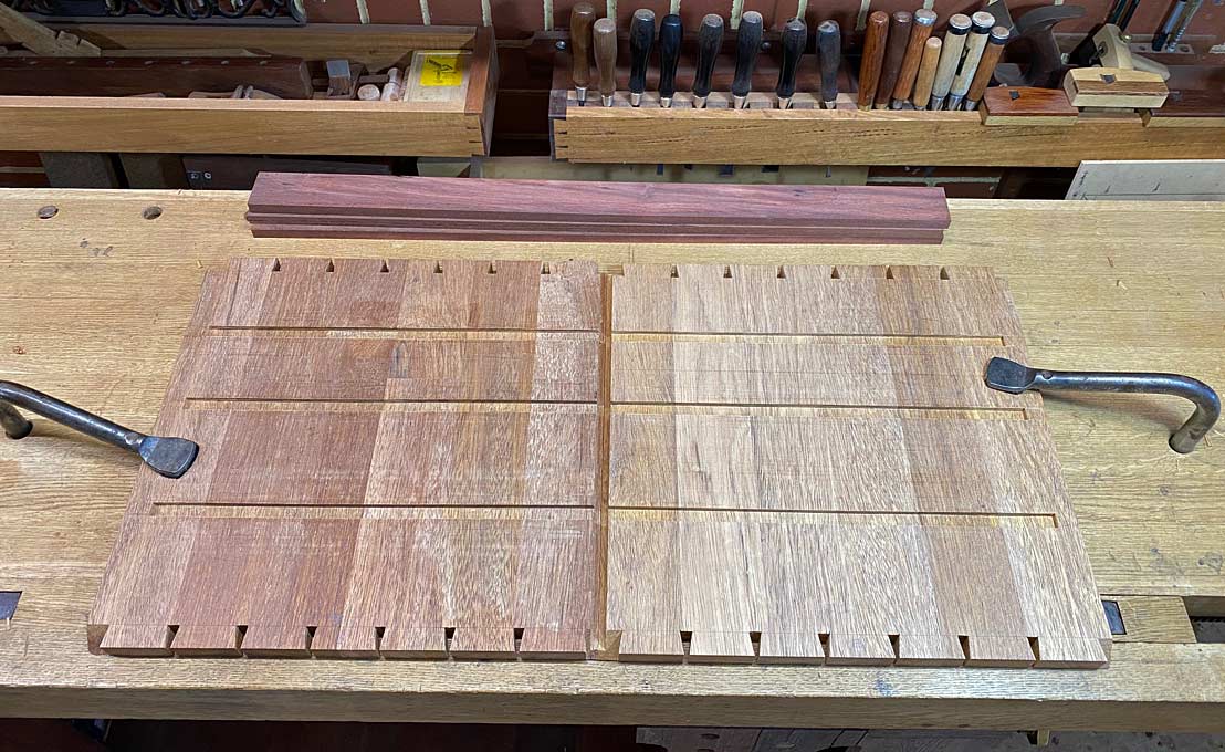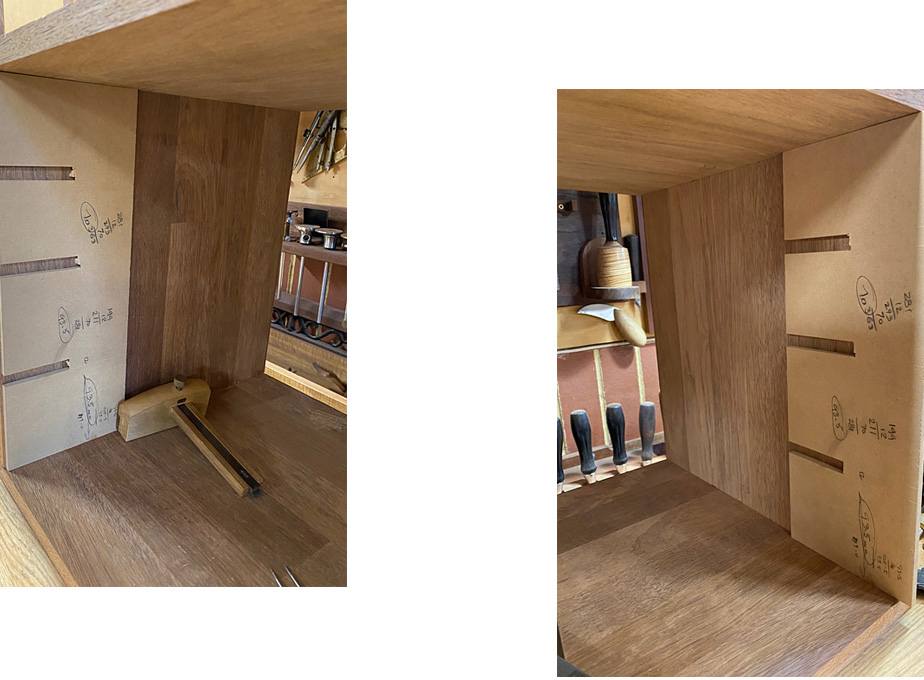 case is a dry fit. Above the case is the outlay of the drawer blades