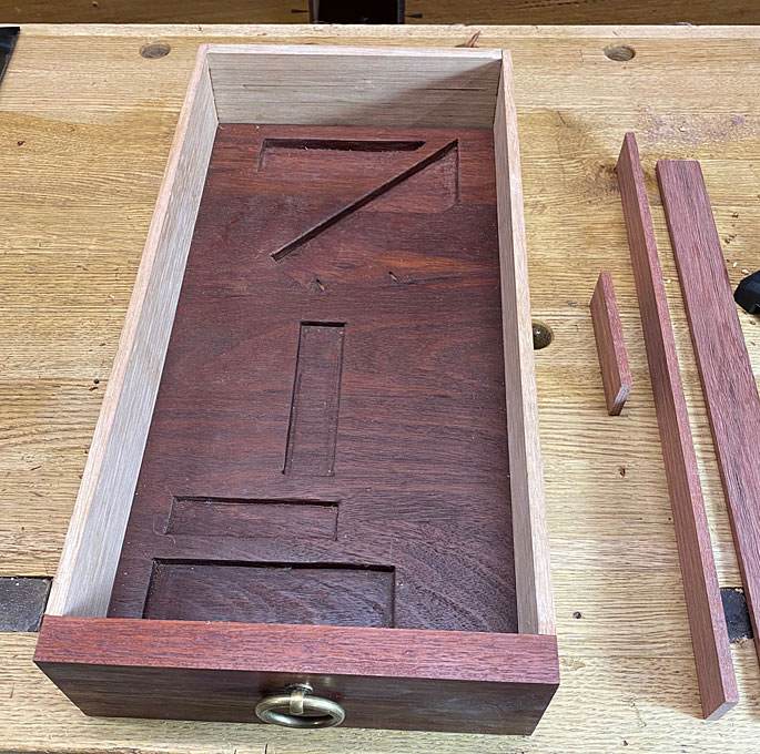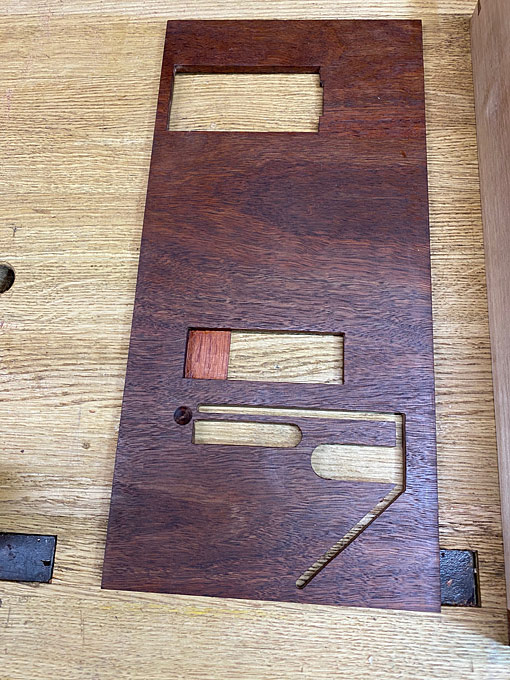 Jarrah panel for the latter squares is a loose fit, snug at the sides