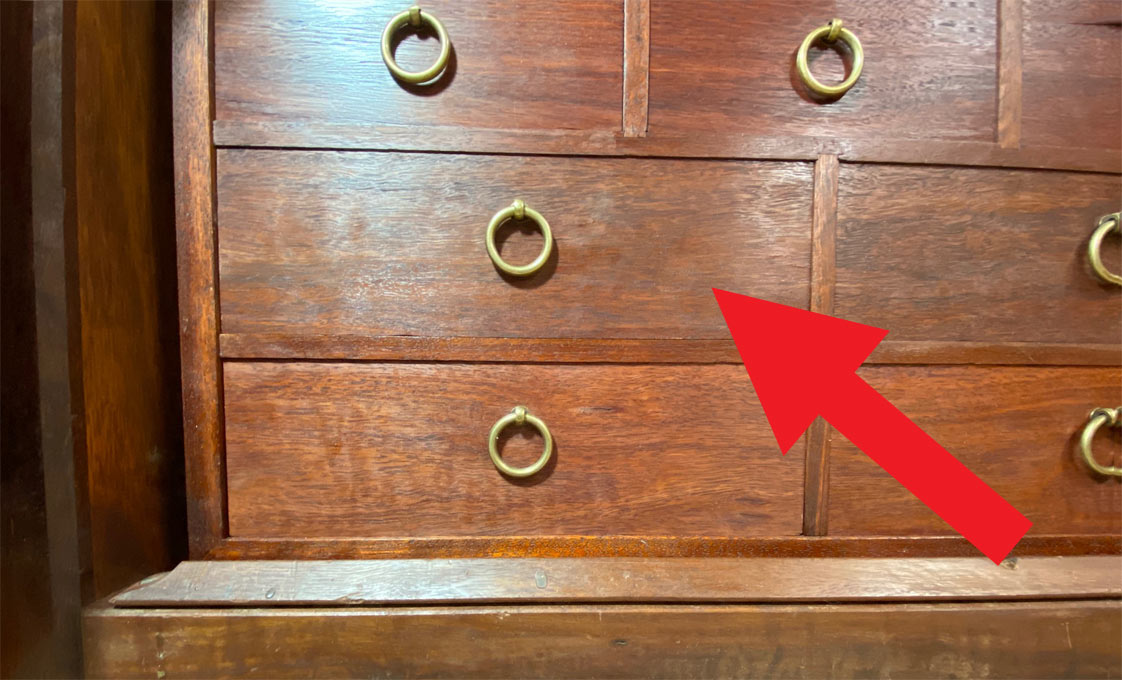 The rear of the drawer, the drawer back, has been cut away above the second dovetail. This is how the top layer slides into the cabinet …