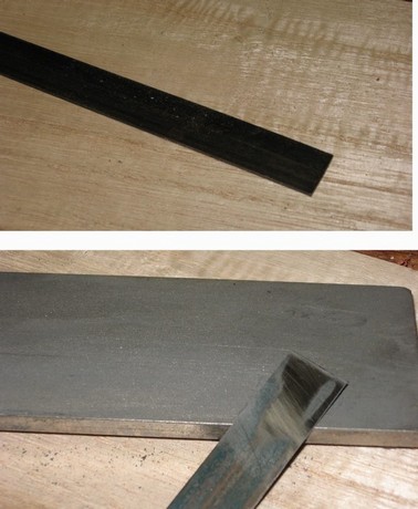 Step one, cut off a section of the bandsaw steel. Step two, smooth the faces.