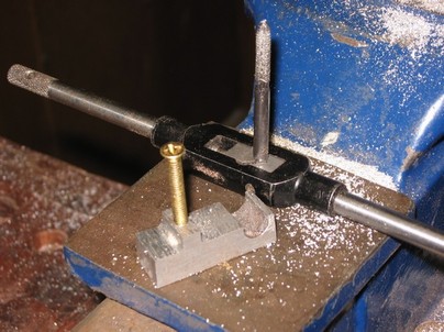 I cut off a section, then epoxied in a piece of brass to fill the end and a brass screw for the thread. I used black-tinted epoxy to create the band on the head.