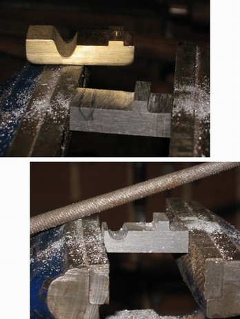 Here I am checking the fit of the tenon. When filing, use one with coarse teeth. I usually add chalk to the face but did not have any today so have to frequently brush the teeth to keep them clean.