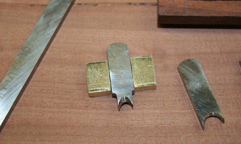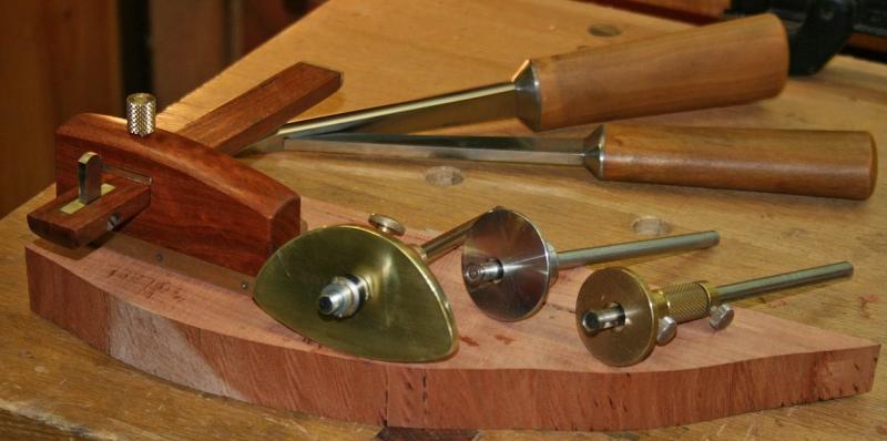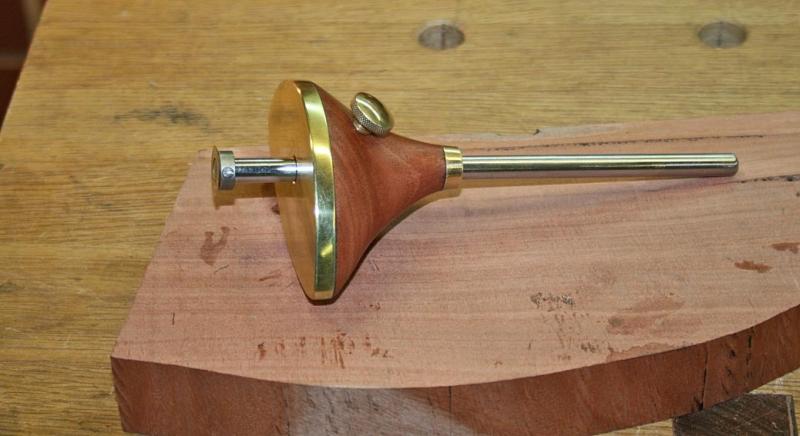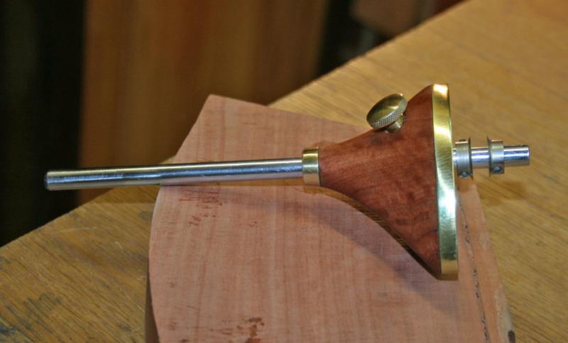 The face is 1/4" thick (very hard) brass, the wood is more scrap Fiddleback Jarrah, and the arm was donated by an ex-screwdriver. The knives are the Tite-Mark ones mentioned earlier.