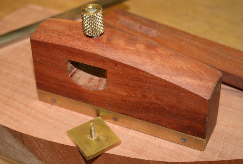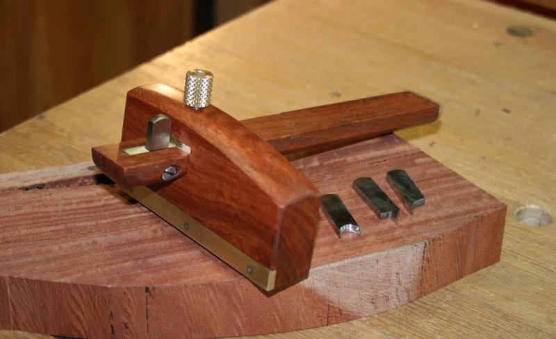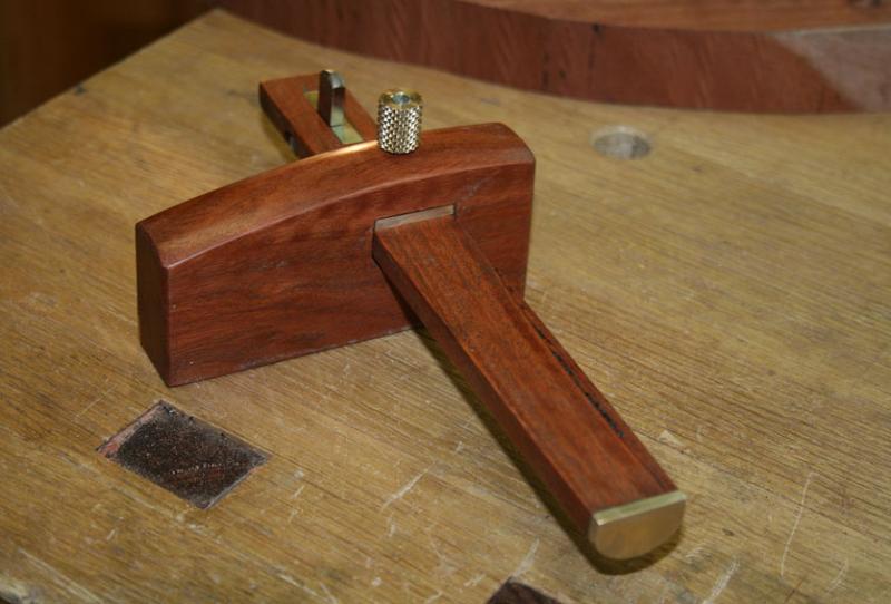 The first gauge is based on the Kinshiro profile, but has a Western arm. It is made from some scrap Fiddleback Jarrah and brass. The fence is 4 ½" long x 2 ½" high ...