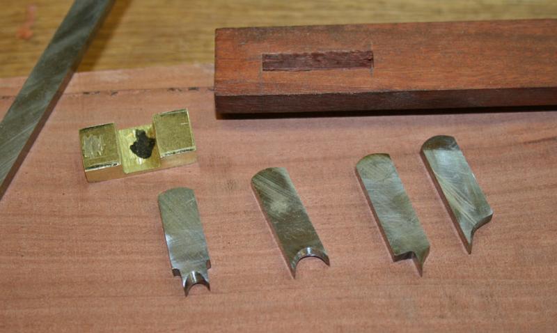 The knives are made from 4mm thick HSS (they should not need resharpening for a while!). So far I have made double-sided knives for a 1/4" and 3/8" mortice-and-tenons, and two straight knives (I made a second when I realised that the first would score 3/8" away from the fence). The idea for these knives came from dovetail planes.